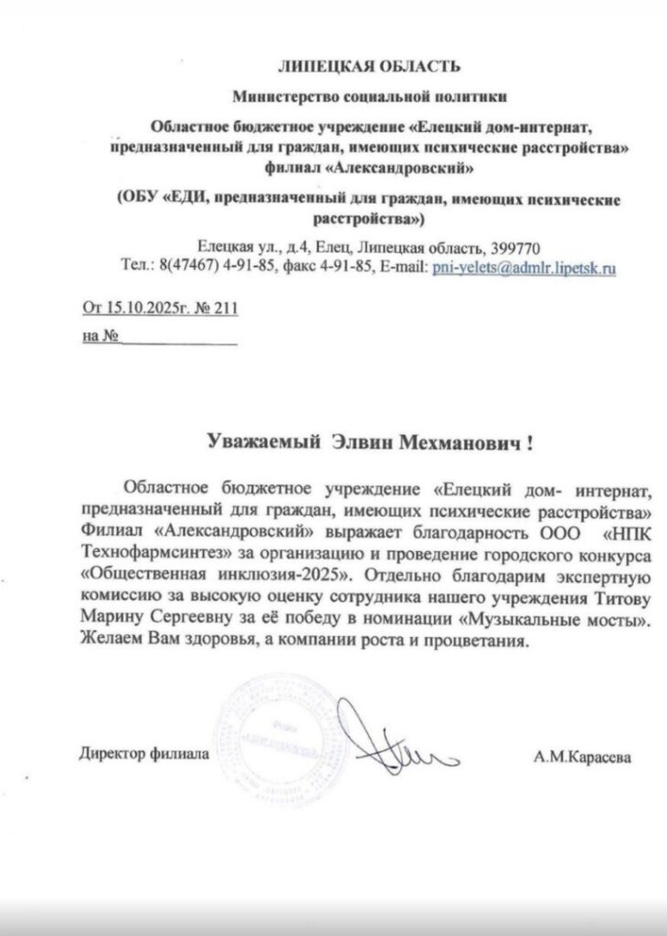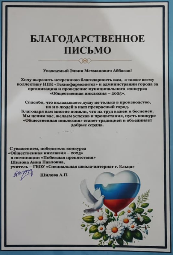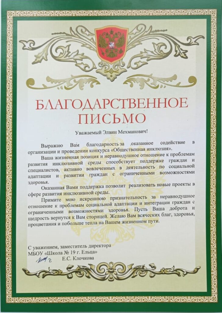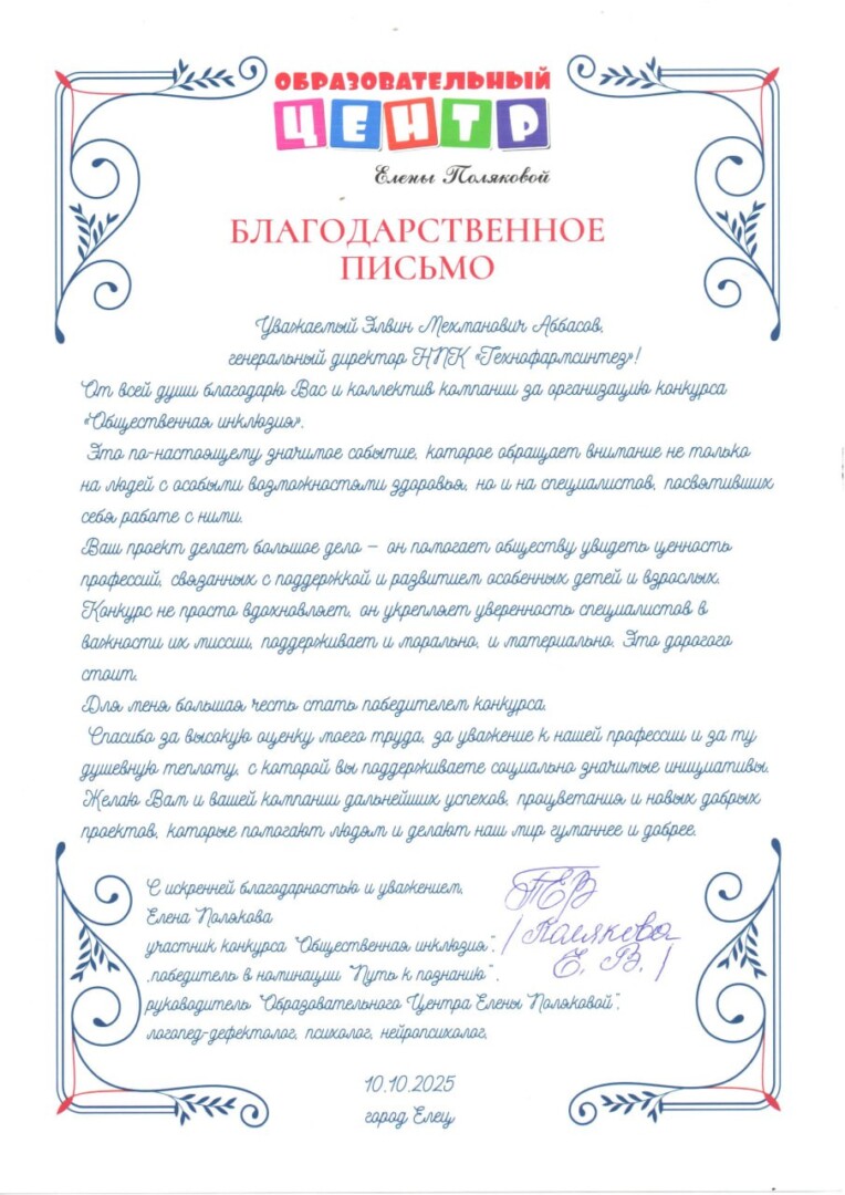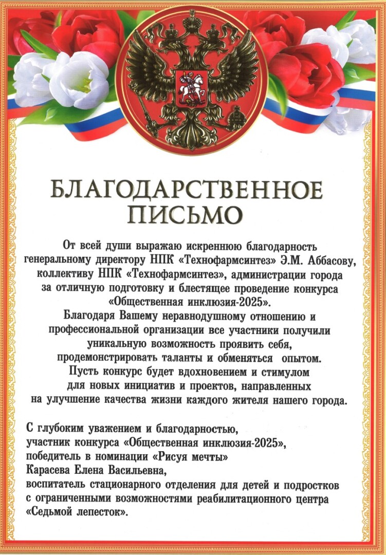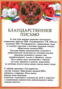 Благодарственные письма конкурса «Общественная инклюзия-2025»