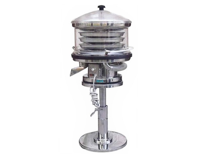 Основные элементы конструкции включают резиновые опоры для снижения вибраций, электромагнитный вибратор с регулируемой частотой амплитуды, перфорированные тарелки, прозрачный пластиковый корпус с крышкой для загрузки таблеток и патрубки для подключения сжатого воздуха и вакуума. Таблетки поступают в устройство через верхнюю крышку и перфорированную тарелку, где за счёт вибраций они перемещаются вниз, а пыль удаляется с помощью сжатого воздуха или вакуума.