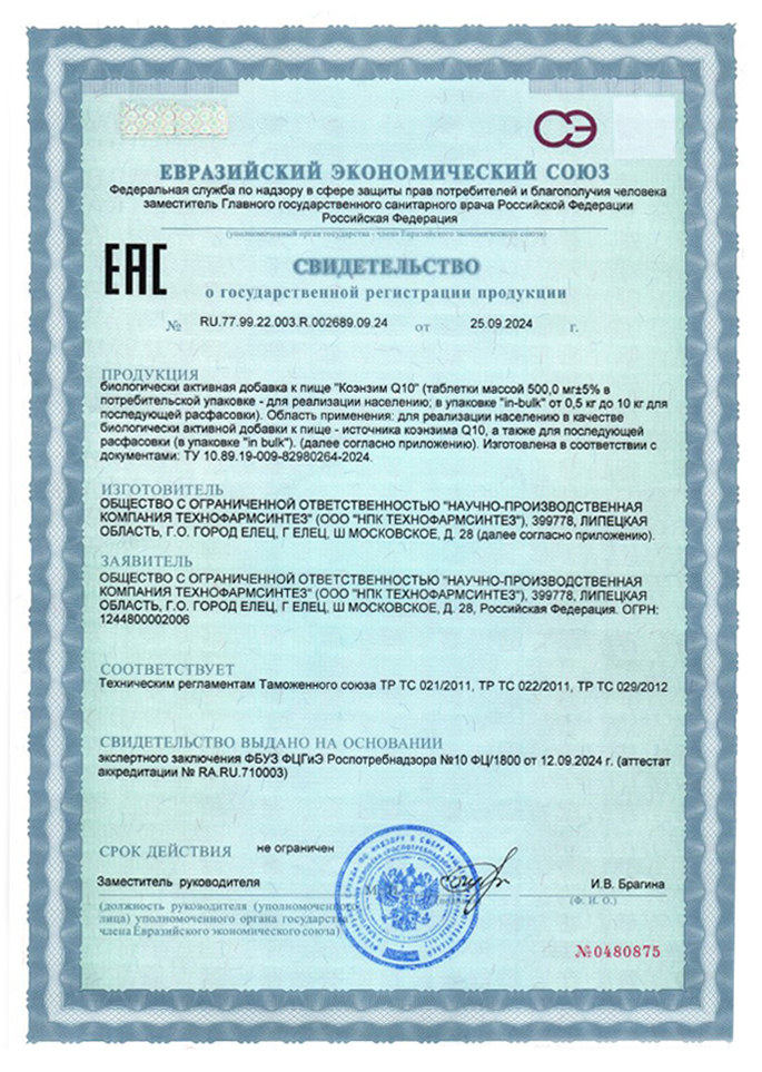 Состав: коэнзим Q10 - 100 мг. Масса таблетки - 500 мг.