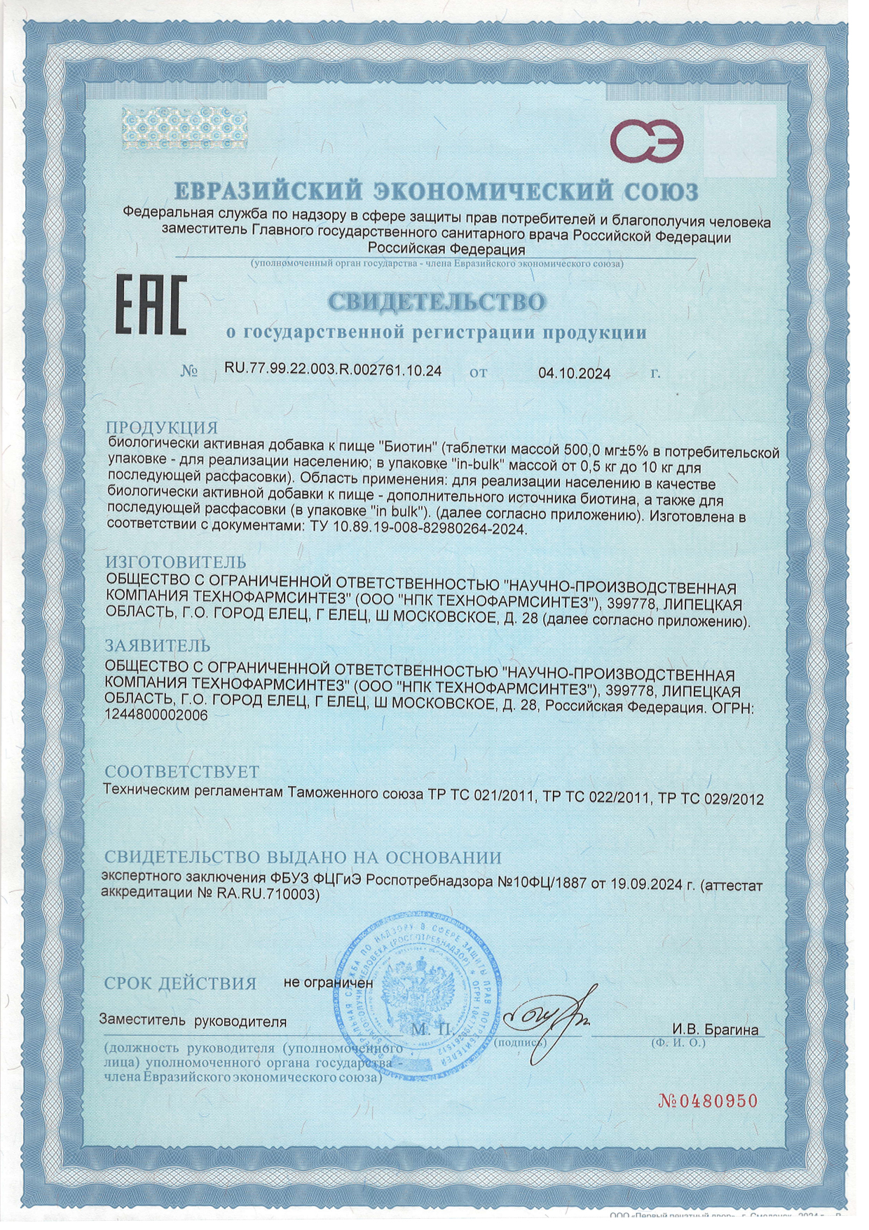 Состав: витамин В7 (биотин) - 600 мкг. Масса таблетки - 500 мг.