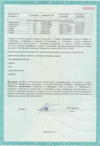 Выданные в системе добровольной сертификации «ЭКОпроМНАДЗОР» после проведения полного лабораторного анализа, включающего санитарно-химические и токсикологические показатели: