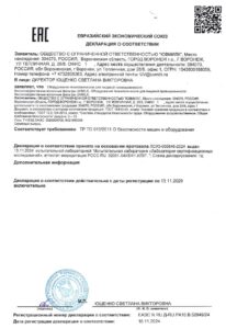 📄 2. Декларации о соответствии требованиям ТР ТС 010/2011 «О безопасности машин и оборудования»