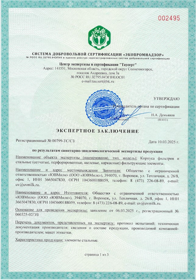 Экспертное заключение № 00888-ТС/СЗ от 30.06.2025 — Фильтры UVMILK®