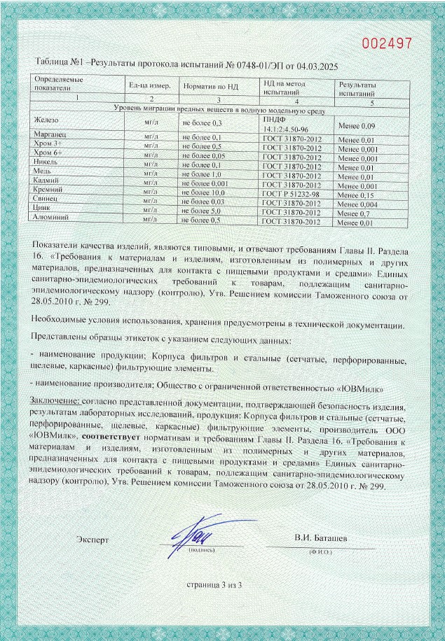 Экспертное заключение № 00799-ТС/СЗ от 10.03.2025 — Корпуса и элементы из нержавеющей стали