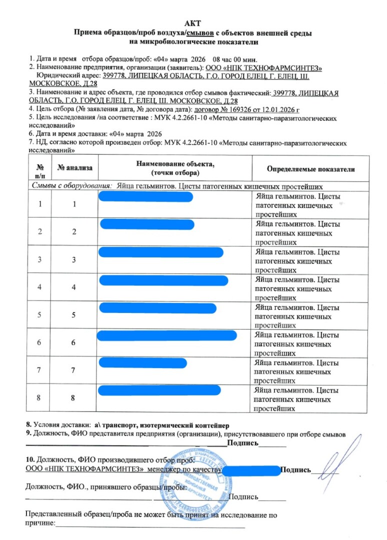 Очередная отправка смывов с производственного оборудования на экспертизу безопасности от 04.03.2026г. 🛡