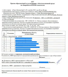 Мы регулярно осуществляем контроль чистоты оборудования, собирая смывы и отправляя их на экспертизу в Федеральное бюджетное учреждение здравоохранения «Центр Гигиены и эпидемиологии в Липецкой области» в г. Липецк. Эта важная процедура проводится в строгом соответствии с принципами HACCP – международной системы управления безопасностью пищевой продукции.