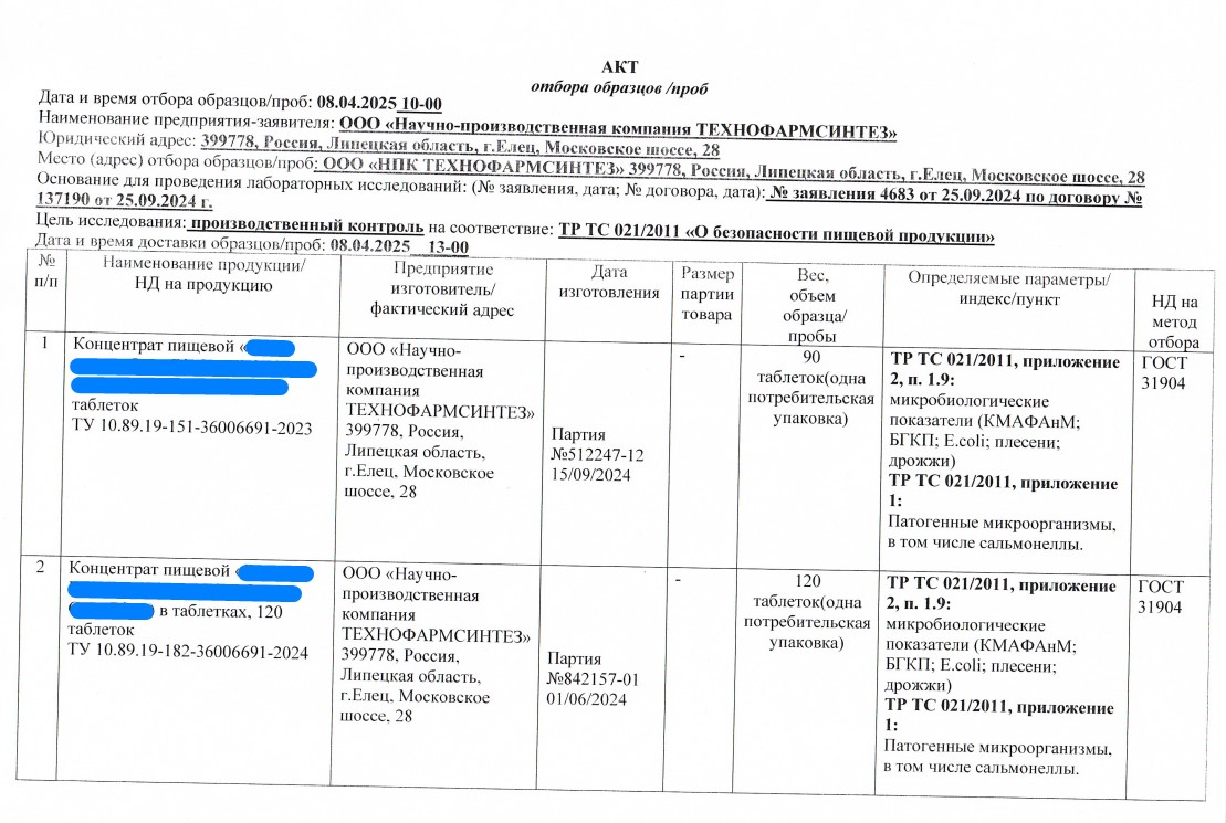 Очередные образцы (Пищевые концентраты в кол-ве 10 шт. + БАД к пище 5шт.) отправились на лабораторные испытания и экспертизу безопасности в Федеральное бюджетное учреждение здравоохранения «Центр Гигиены и эпидемиологии в Липецкой области» в г. Липецк. Результатами мы обязательно поделимся в наших сообществах.