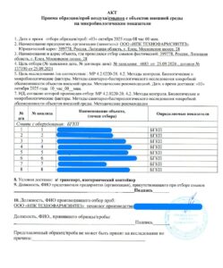 Отправка смывов с произв. оборудования на экспертизу безопасности от 03.10.2025г.