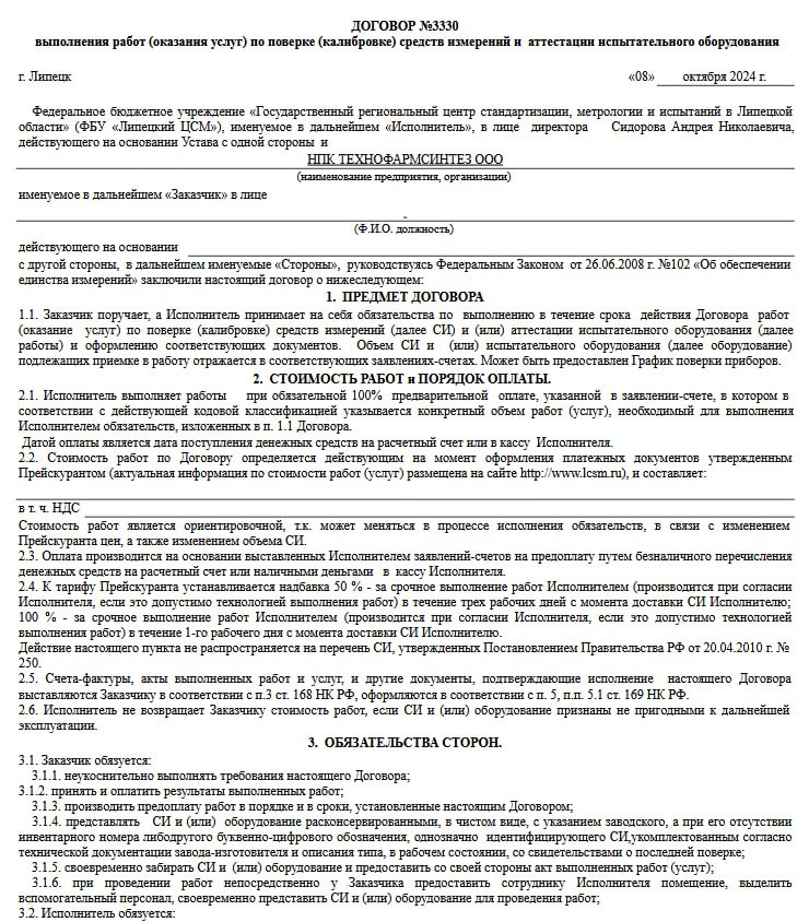 НАУЧНО-ПРОИЗВОДСТВЕННАЯ КОМПАНИЯ ТЕХНОФАРМСИНТЕЗ заключила договор с Федеральным бюджетным учреждением «Государственный региональный центр стандартизации, метрологии и испытаний в Липецкой области». В рамках этого соглашения специалисты центра будут осуществлять регулярную поверку средств измерений нашего предприятия с периодичностью один раз в полгода.