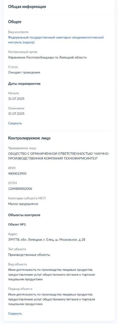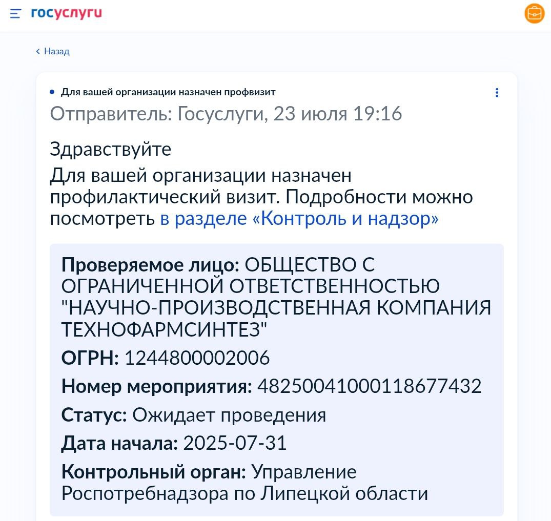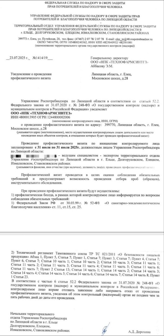 Прохождение аудита Управления Роспотребнадзора по Липецкой области от 01.08.2025г.
