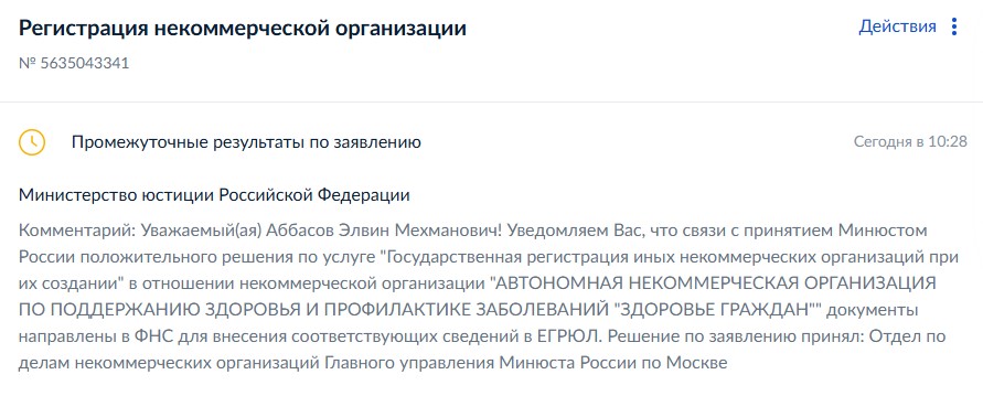 Регистрация АВТОНОМНОЙ НЕКОММЕРЧЕСКОЙ ОРГАНИЗАЦИИ ПО ПОДДЕРЖАНИЮ ЗДОРОВЬЯ И ПРОФИЛАКТИКЕ ЗАБОЛЕВАНИЙ «ЗДОРОВЬЕ ГРАЖДАН»
