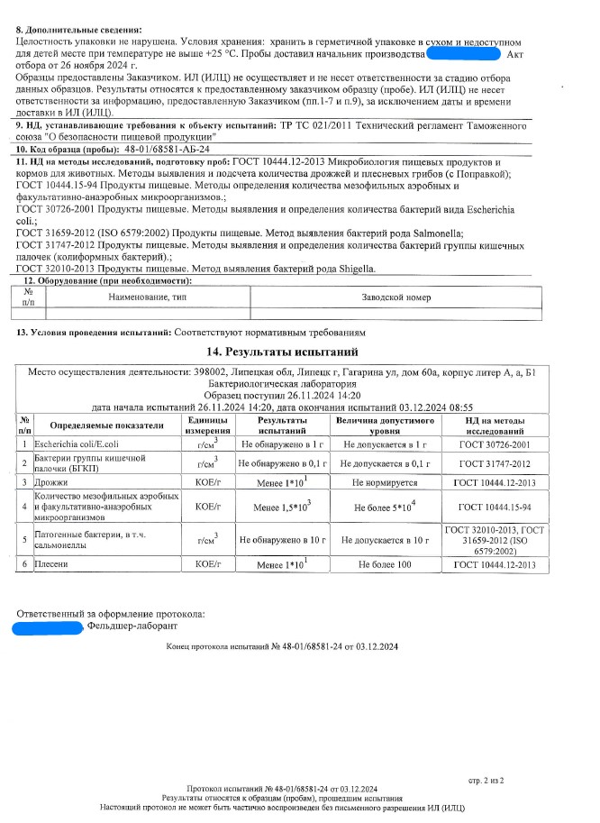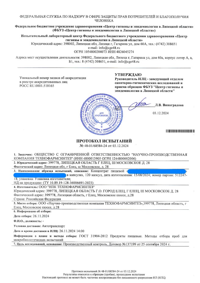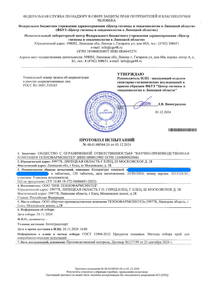 Сегодня, в очередной раз, мы с гордостью делимся свежими результатами экспертизы безопасности нашей продукции 03.12.2024г. Управление Федеральной службы по надзору в сфере защиты прав потребителей и благополучия человека по Липецкой области в г. Липецк подтвердило: абсолютно вся наша продукция полностью соответствует всем строгим требованиям безопасности!