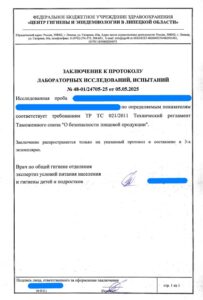 Сегодня, в очередной раз, мы с гордостью делимся свежими результатами экспертизы безопасности нашей продукции от 05.05.2025г. Управление Федеральной службы по надзору в сфере защиты прав потребителей и благополучия человека по Липецкой области в г. Липецк подтвердило: абсолютно вся наша продукция полностью соответствует всем строгим требованиям безопасности!
