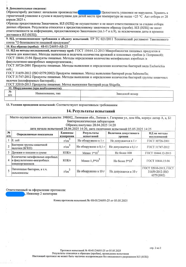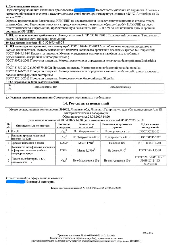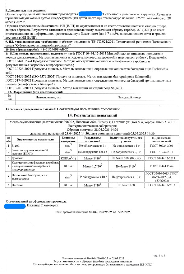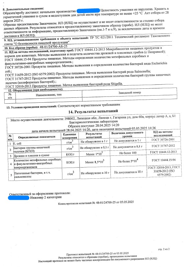 Сегодня, в очередной раз, мы с гордостью делимся свежими результатами экспертизы безопасности нашей продукции от 05.05.2025г. Управление Федеральной службы по надзору в сфере защиты прав потребителей и благополучия человека по Липецкой области в г. Липецк подтвердило: абсолютно вся наша продукция полностью соответствует всем строгим требованиям безопасности!