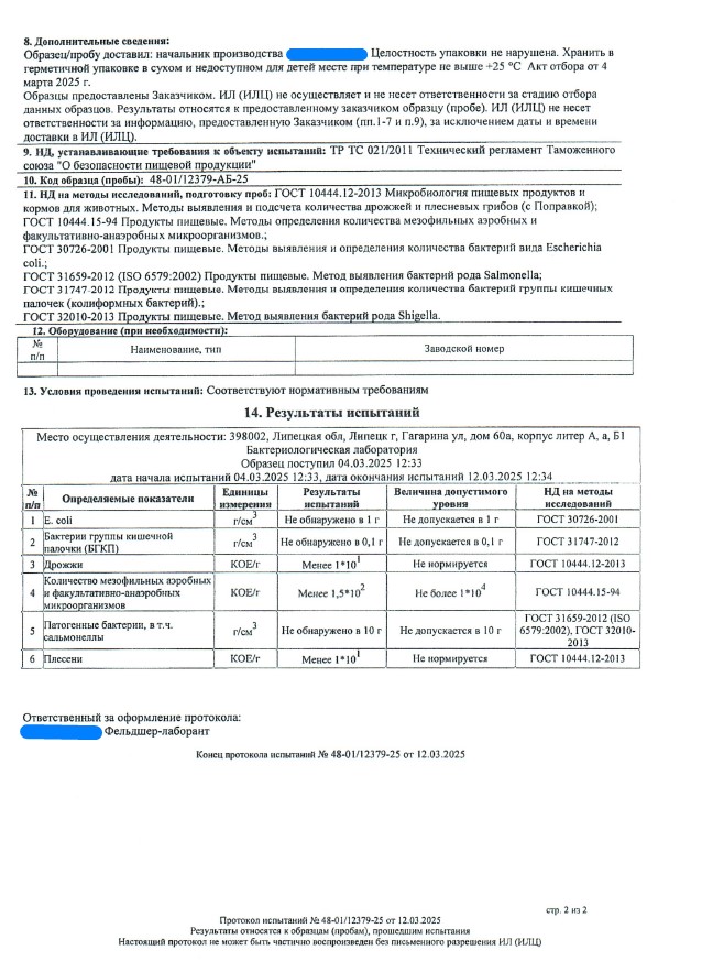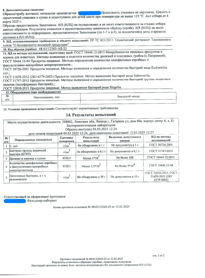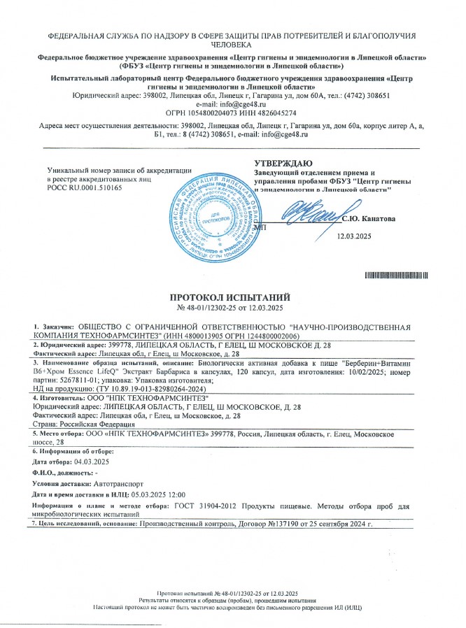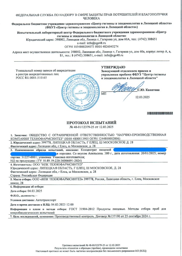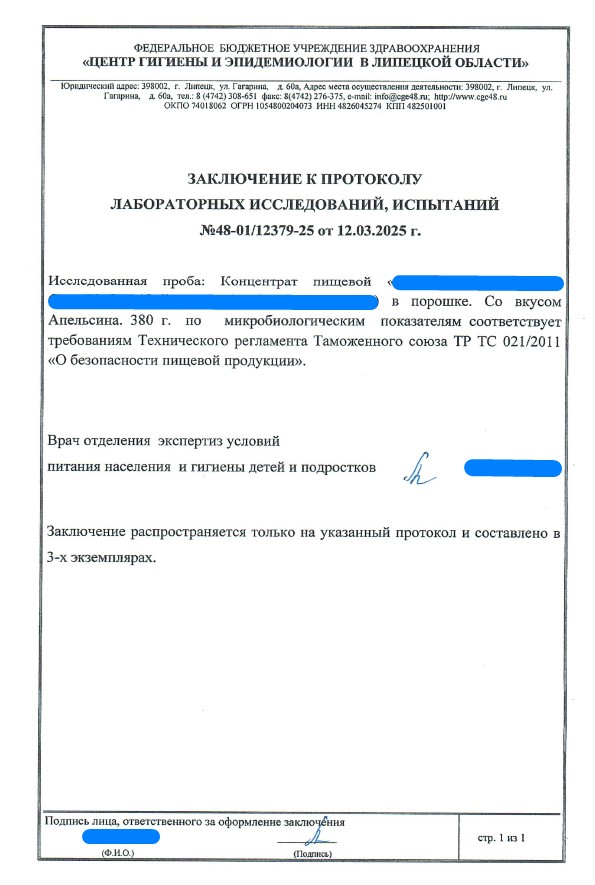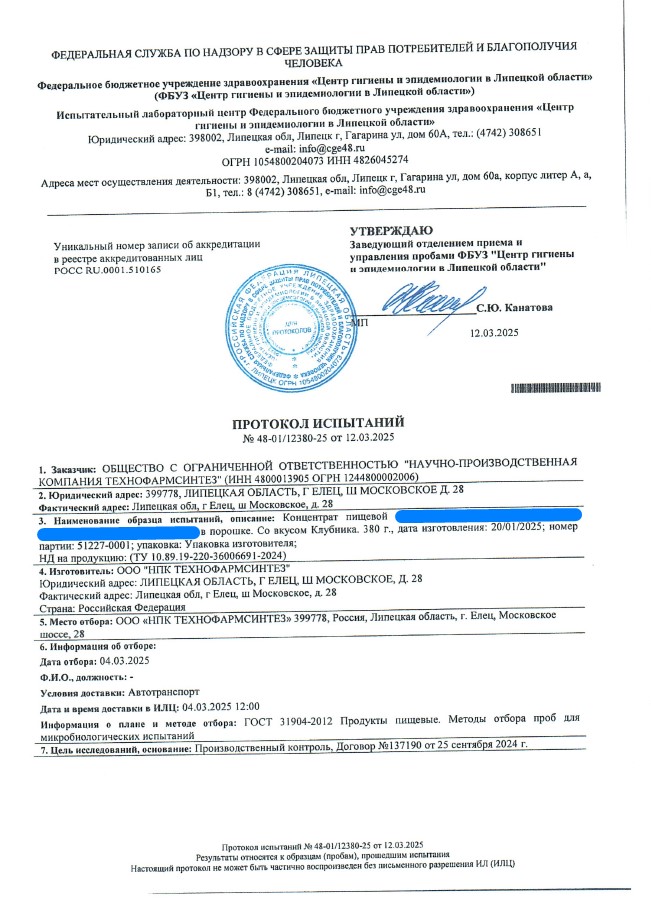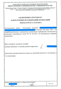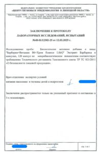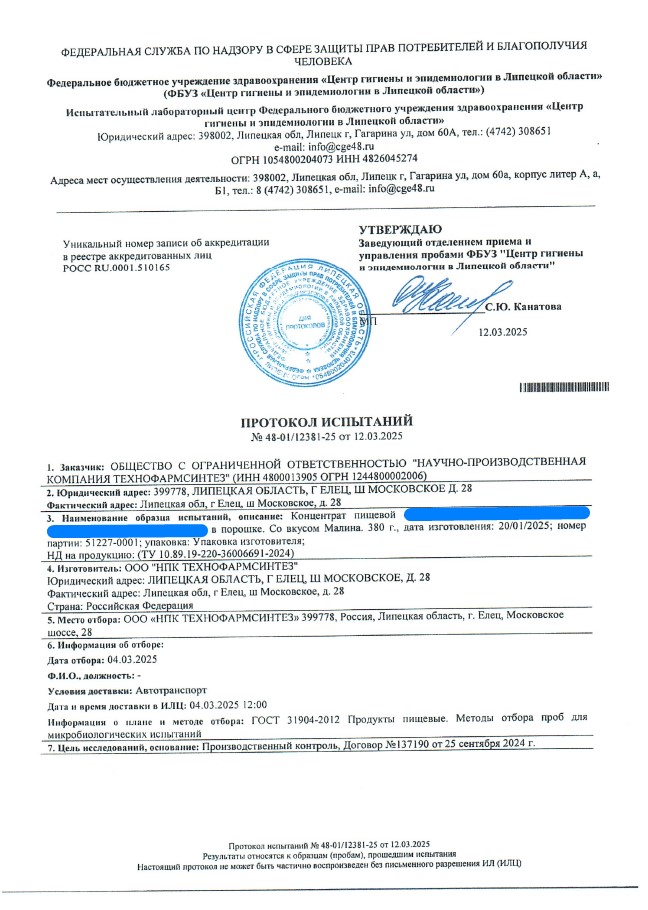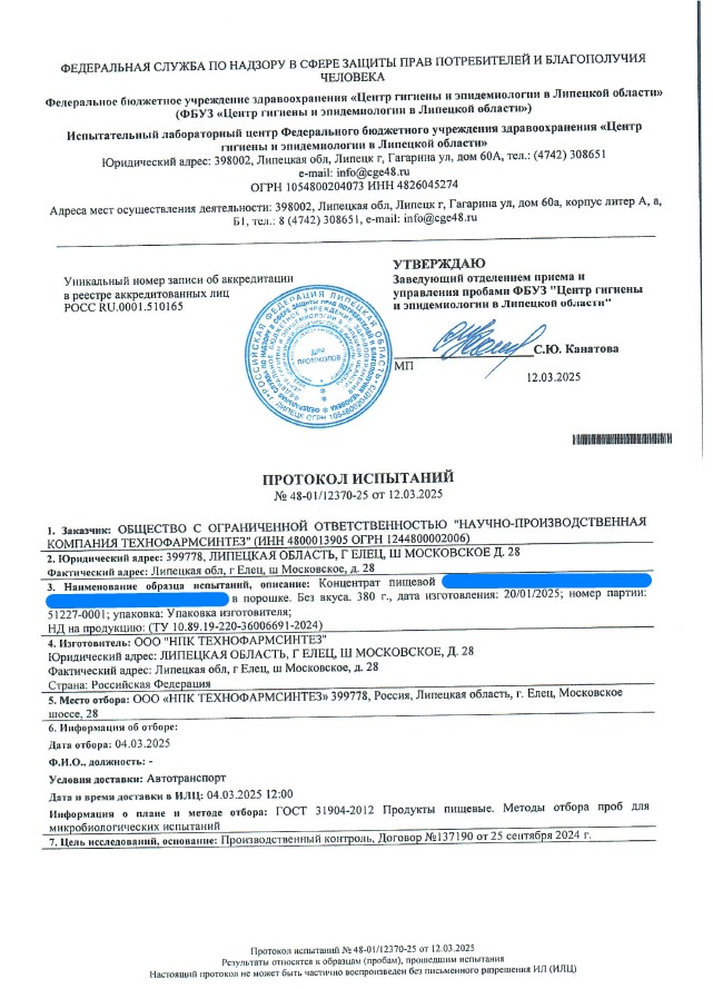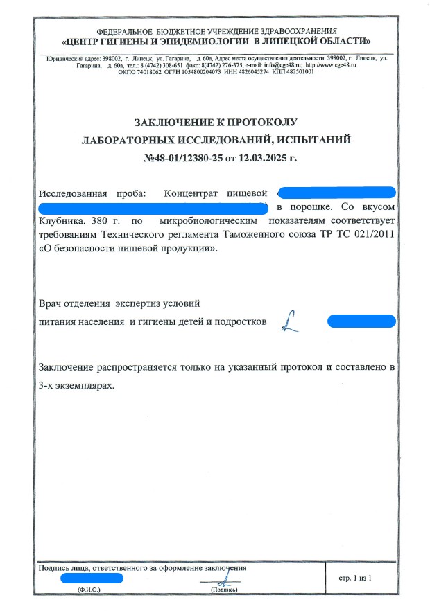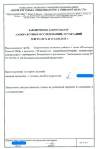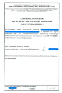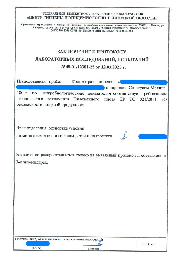 Сегодня, в очередной раз, мы с гордостью делимся свежими результатами экспертизы безопасности нашей продукции (партия БАД к пище + пищевых концентратов) от 12.03.2025г. Управление Федеральной службы по надзору в сфере защиты прав потребителей и благополучия человека по Липецкой области в г. Липецк подтвердило: абсолютно вся наша продукция полностью соответствует всем строгим требованиям безопасности!