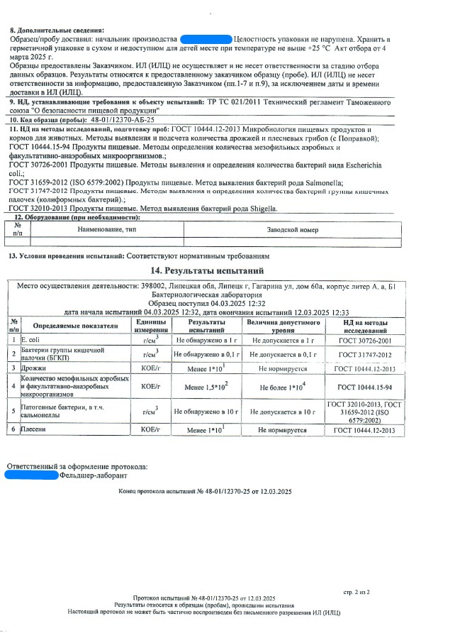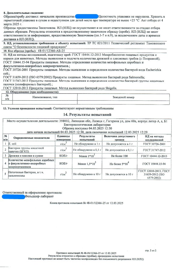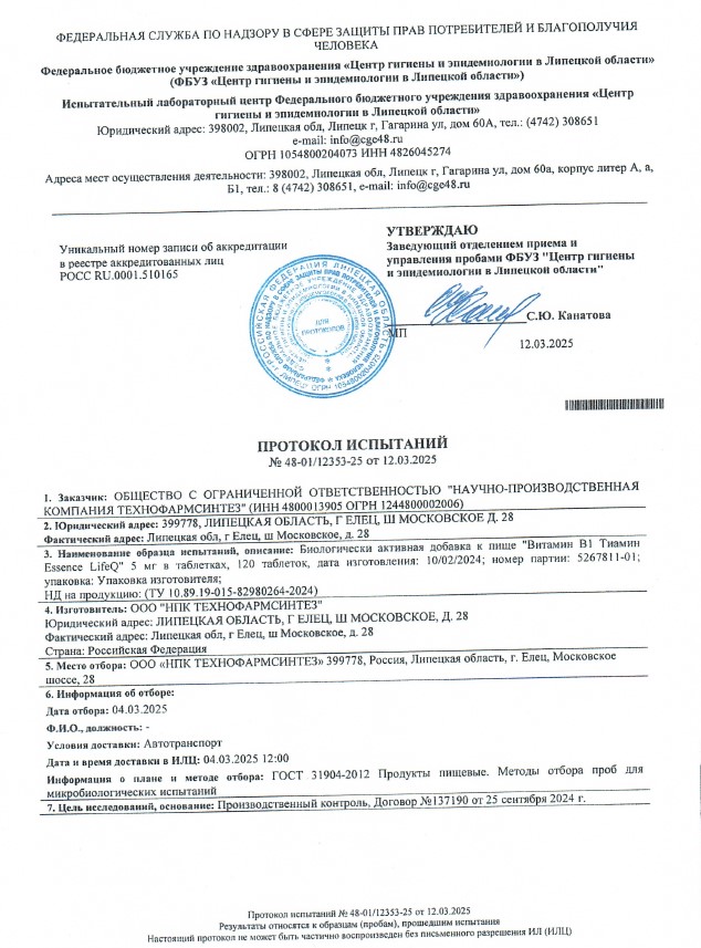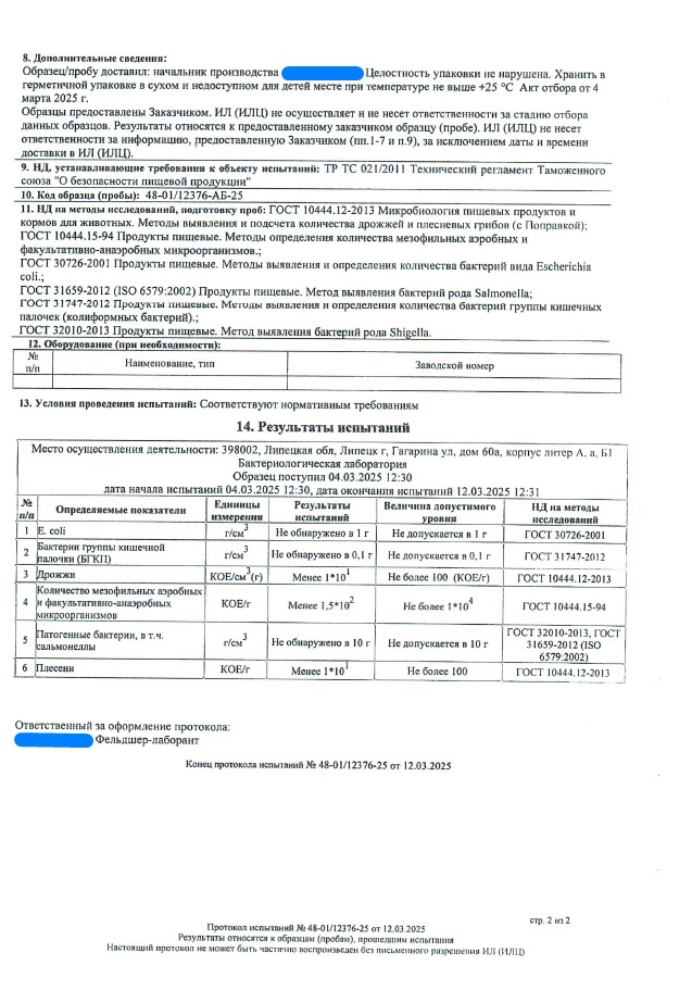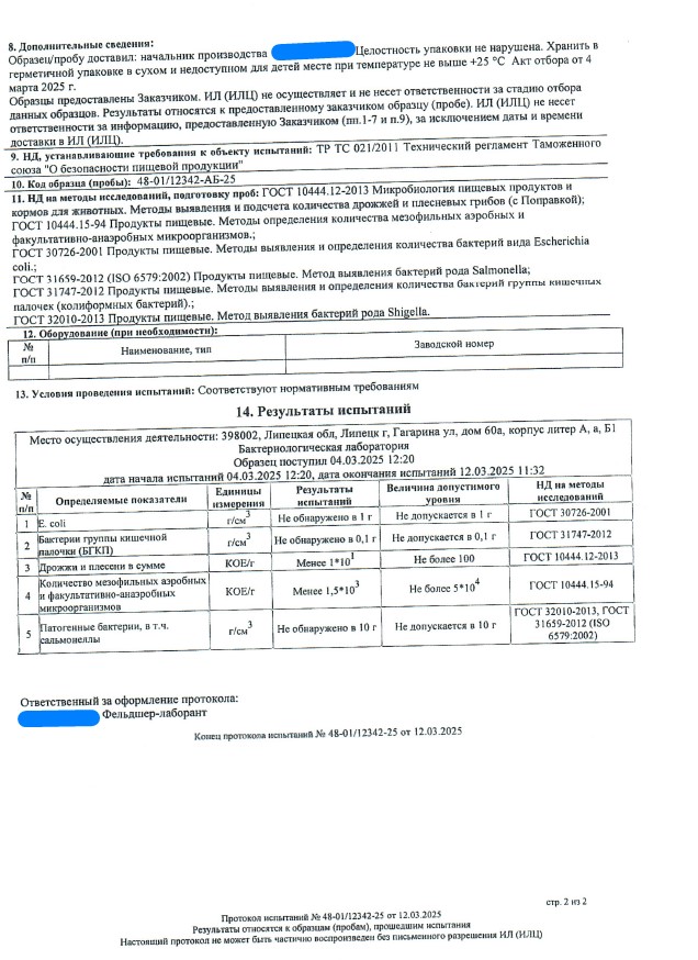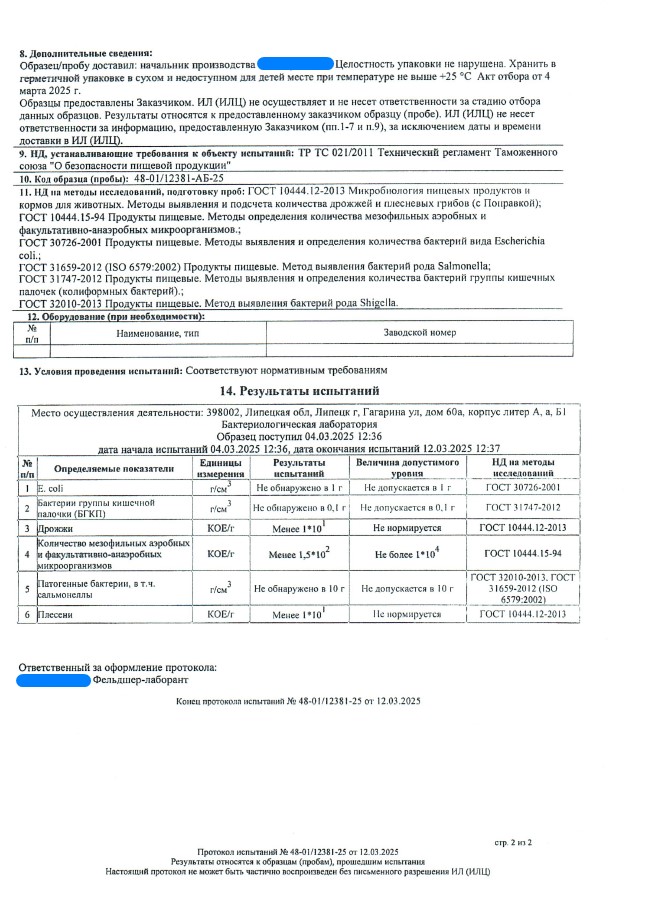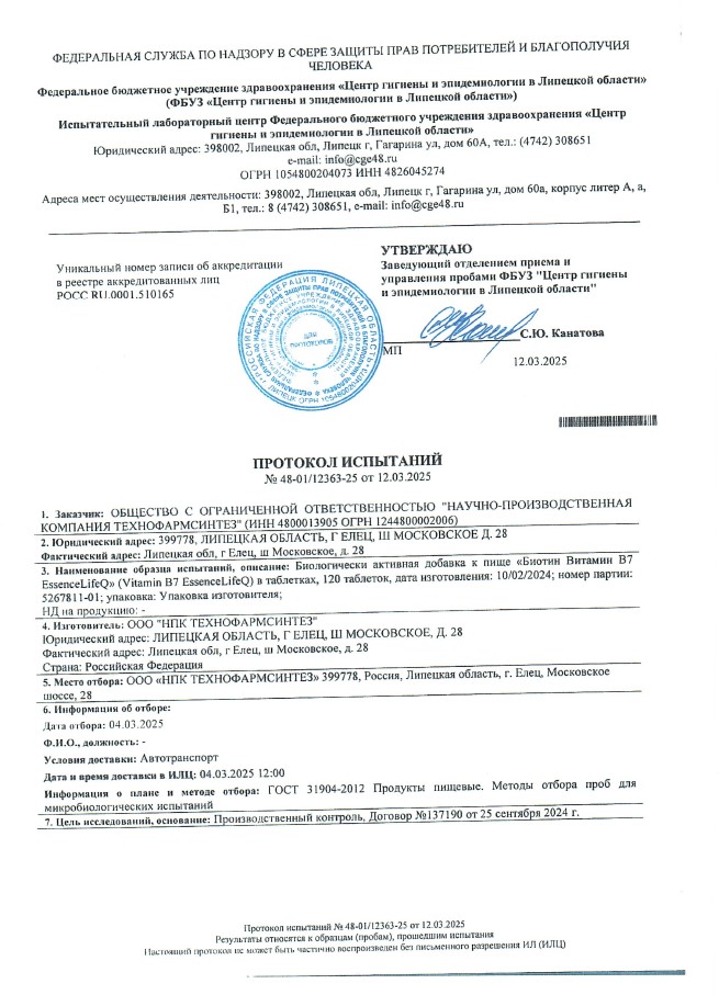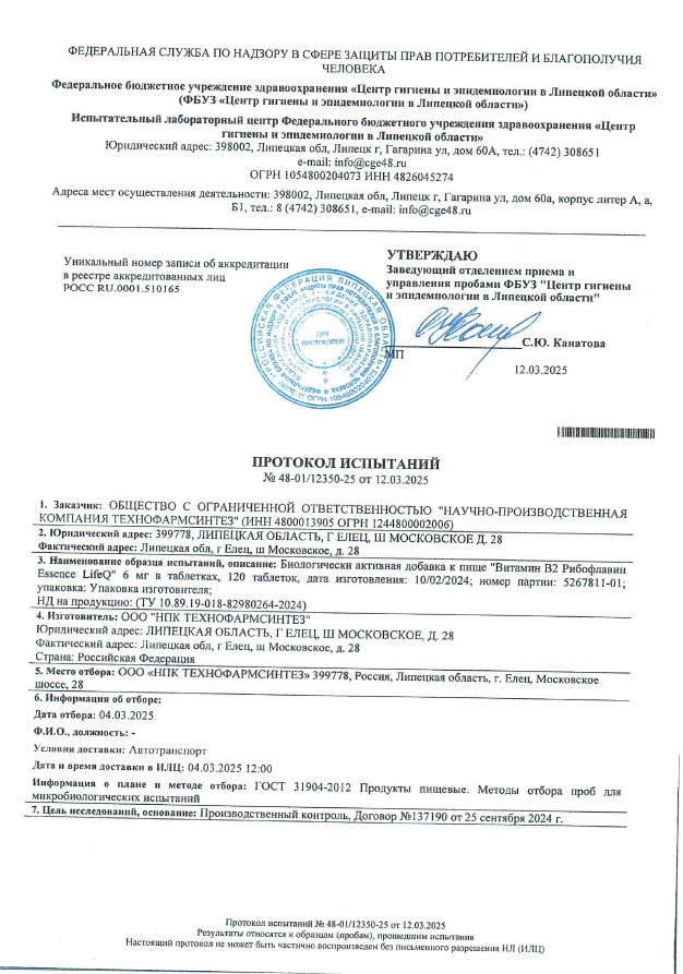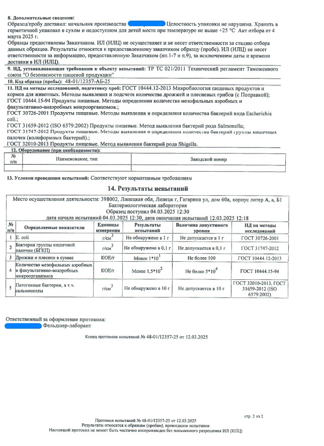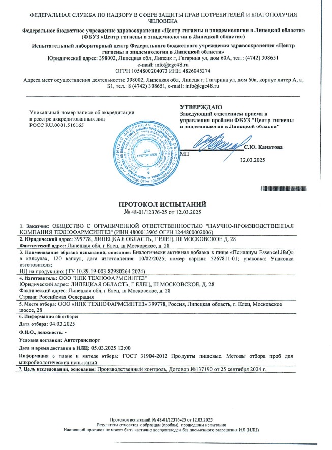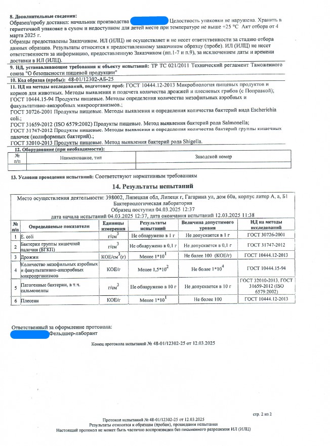 Сегодня, в очередной раз, мы с гордостью делимся свежими результатами экспертизы безопасности нашей продукции (партия БАД к пище + пищевых концентратов) от 12.03.2025г. Управление Федеральной службы по надзору в сфере защиты прав потребителей и благополучия человека по Липецкой области в г. Липецк подтвердило: абсолютно вся наша продукция полностью соответствует всем строгим требованиям безопасности!