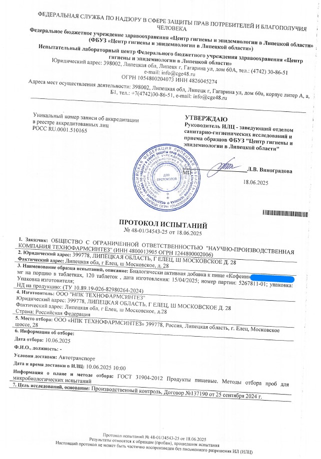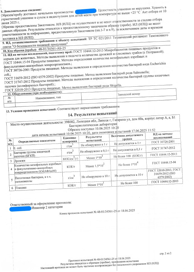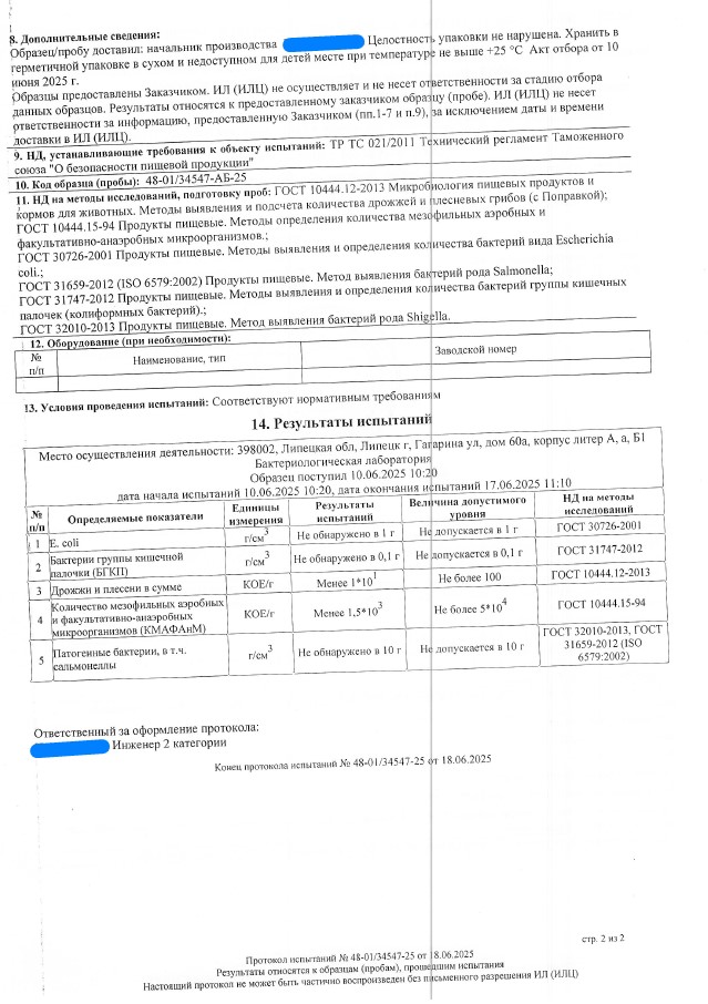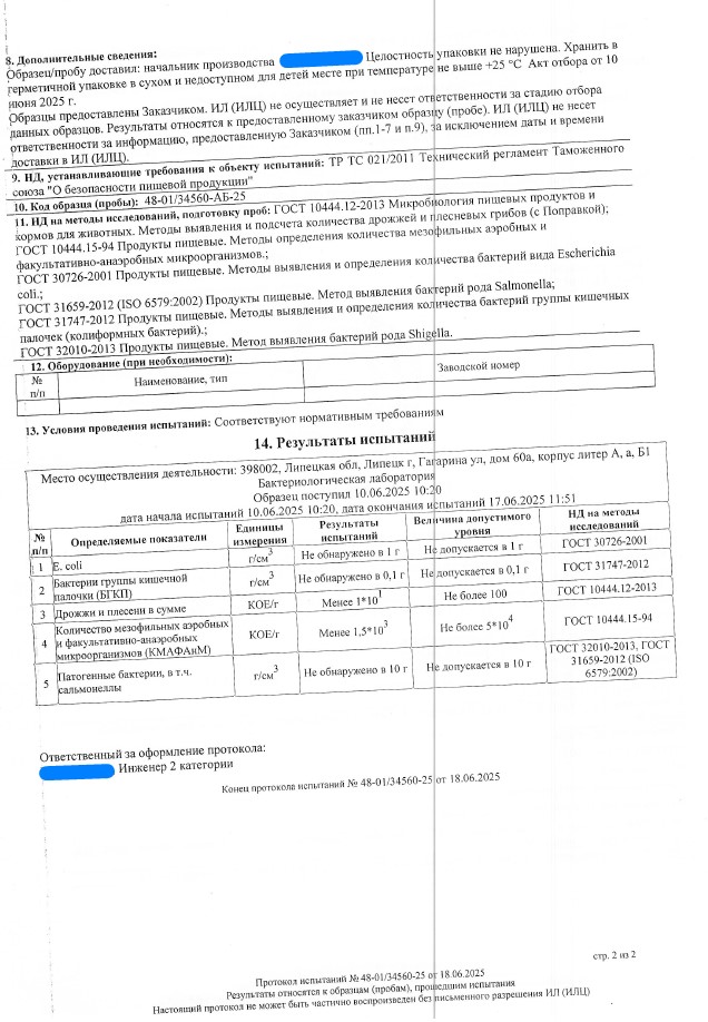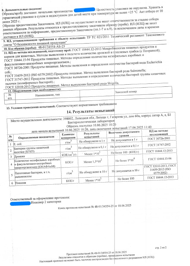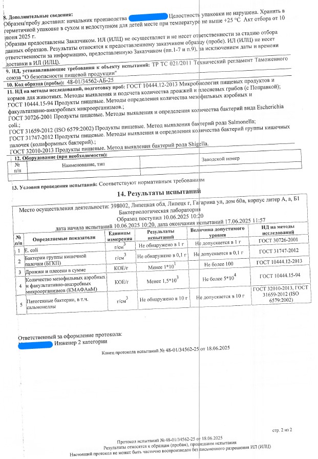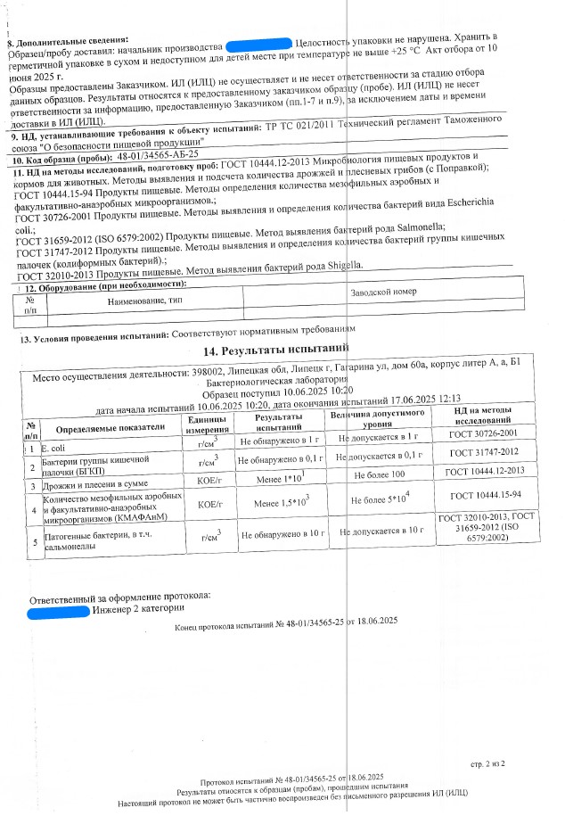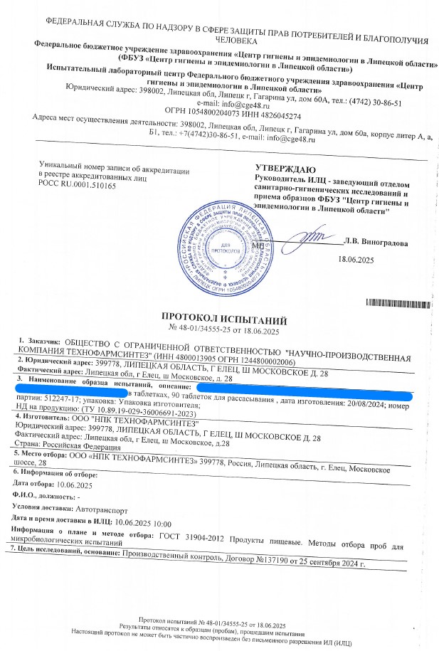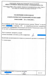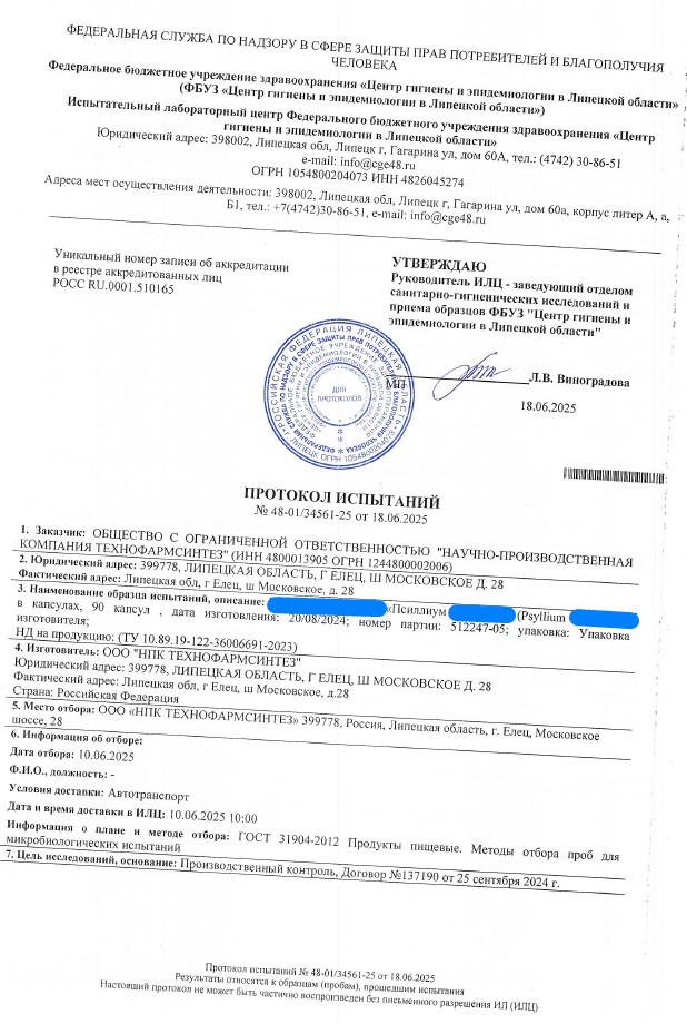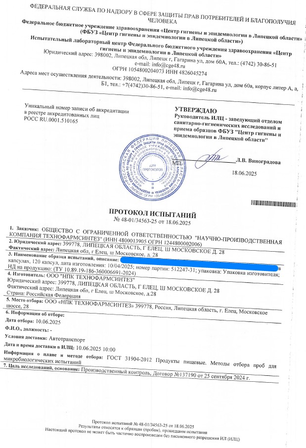Сегодня, в очередной раз, мы с гордостью делимся свежими результатами экспертизы безопасности нашей продукции от 18.06.2025г. Управление Федеральной службы по надзору в сфере защиты прав потребителей и благополучия человека по Липецкой области в г. Липецк подтвердило: абсолютно вся наша продукция (пищевые концентраты, БАД к пище, а так-же наша новая линейка водорастворимых, витаминизированных детокс-напитков) полностью соответствует всем строгим требованиям безопасности!
