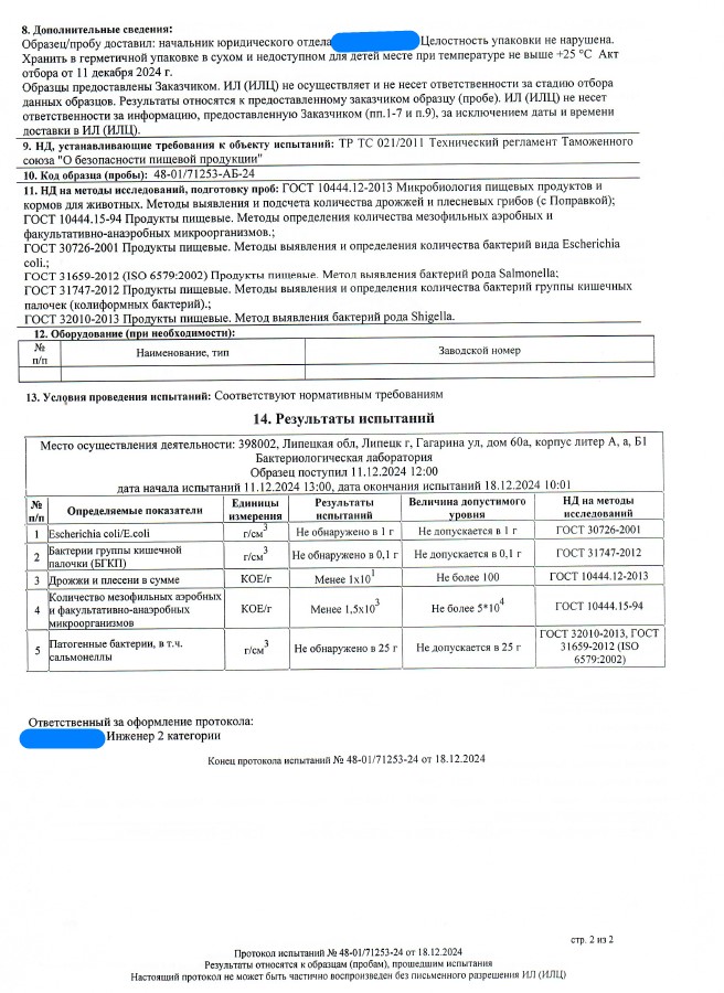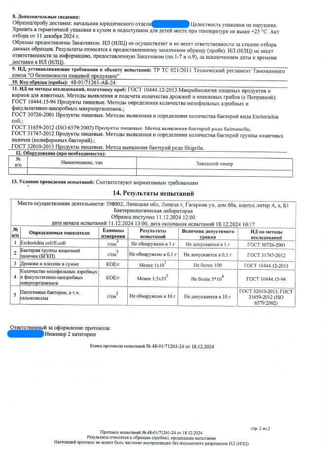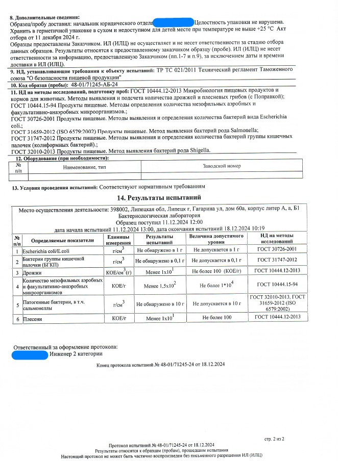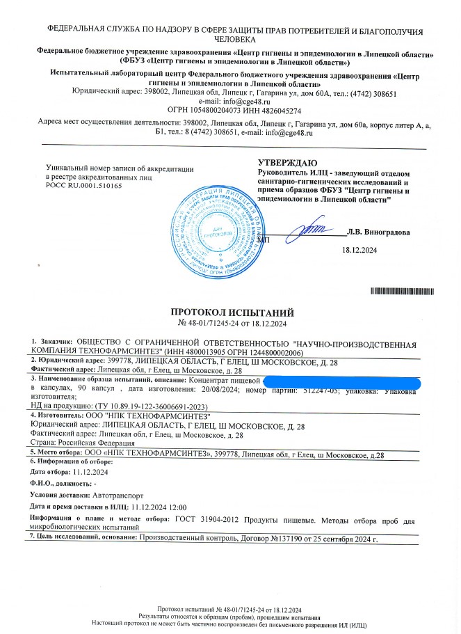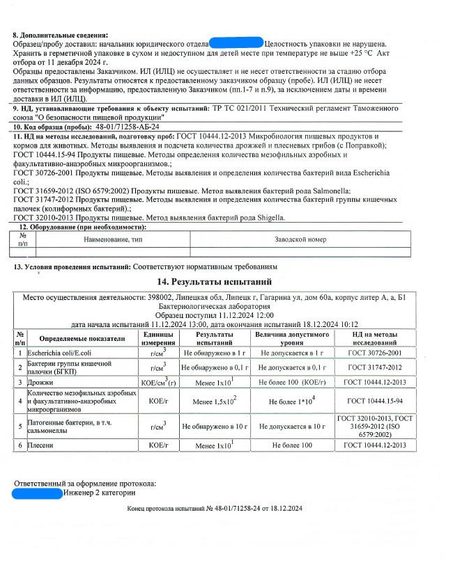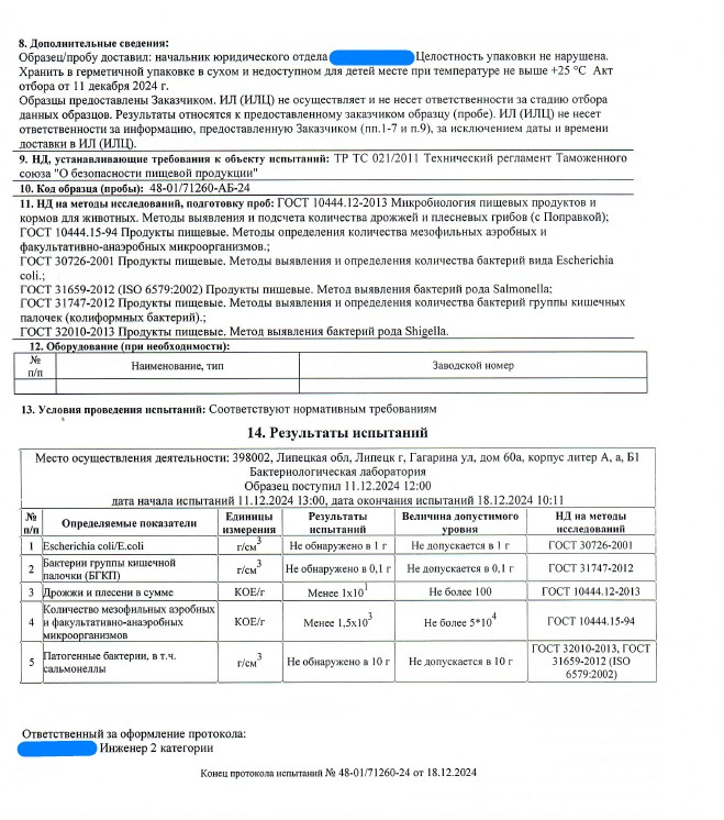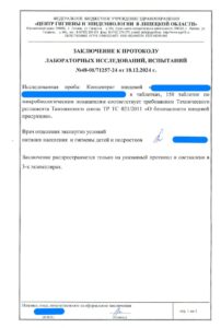 Сегодня, в очередной раз, мы с гордостью делимся свежими результатами экспертизы безопасности нашей продукции от 18.12.2024г. Управление Федеральной службы по надзору в сфере защиты прав потребителей и благополучия человека по Липецкой области в г. Липецк подтвердило: абсолютно вся наша продукция полностью соответствует всем строгим требованиям безопасности!