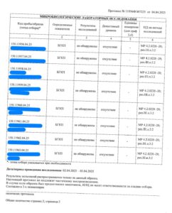 Результаты экспертиз безопасности смывов с произв. оборудования от 04.04.2025г.