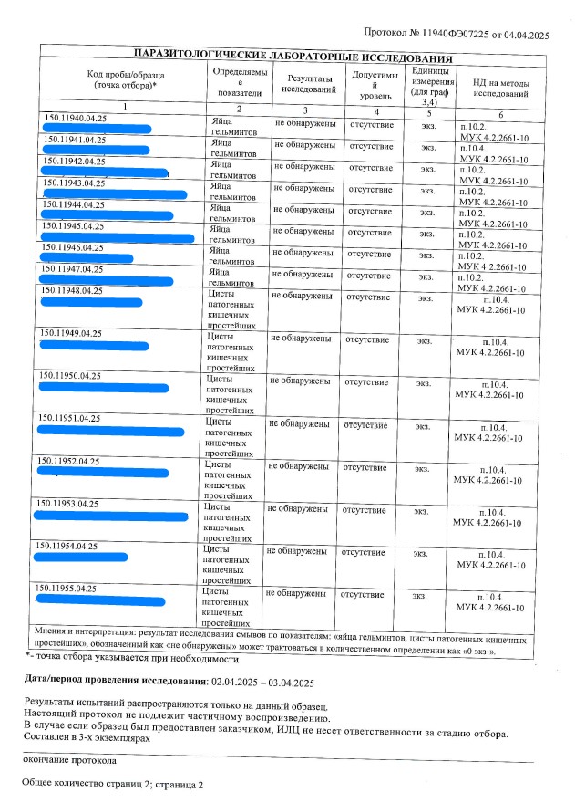 Результаты экспертиз безопасности смывов с произв. оборудования от 04.04.2025г.