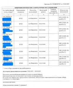Результаты экспертиз безопасности смывов с произв. оборудования от 30.04.2025 и 05.05.2025г.