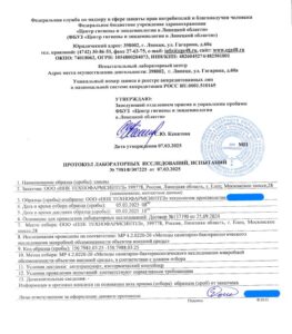 Сегодня наша компания получила результаты экспертиз и лабораторных исследований смывов с производственного оборудования из Федерального бюджетного учреждения здравоохранения «Центр Гигиены и эпидемиологии в Липецкой области» (г. Липецк). Как и всегда, результаты показали абсолютное соответствие всем установленным нормам и стандартам!