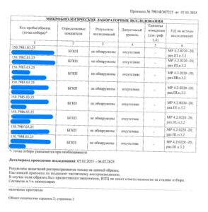 Результаты экспертиз безопасности смывов с произв. оборудования от 7.03.2025г.