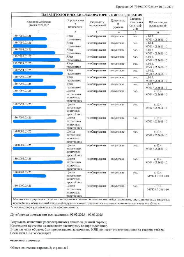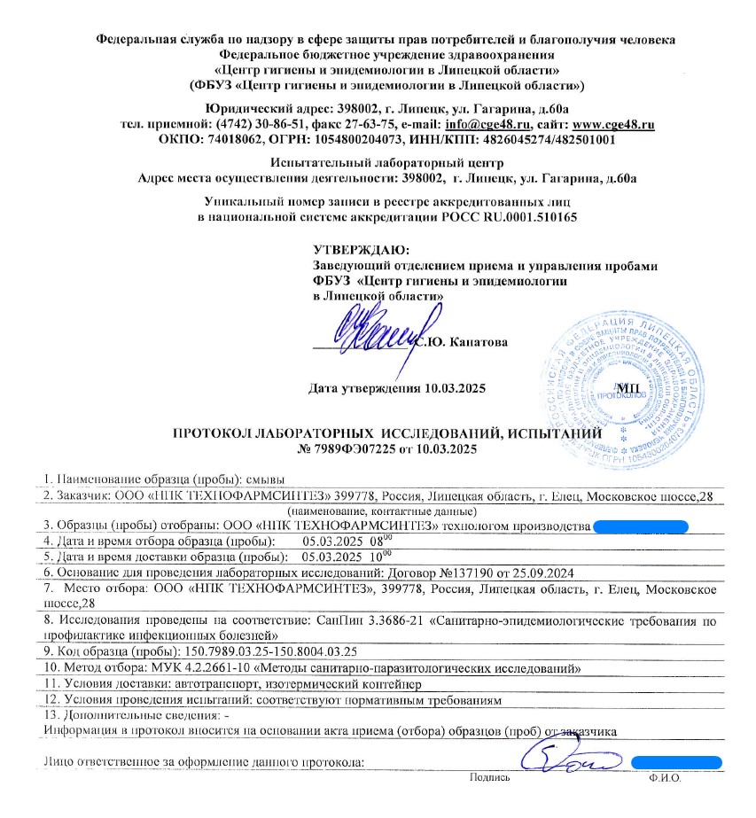 Результаты экспертиз безопасности смывов с произв. оборудования от 7.03.2025г.