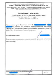 Отправка образцов готовой продукции на экспертизу безопасности от 21.10.2025г.