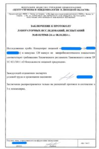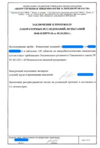 Получили первые результаты экспертиз и лабораторных исследований на соответствие требованиям безопасности пищевой продукции из Управления Федеральной службы по надзору в сфере защиты прав потребителей и благополучия человека по Липецкой области в г. Липецк.