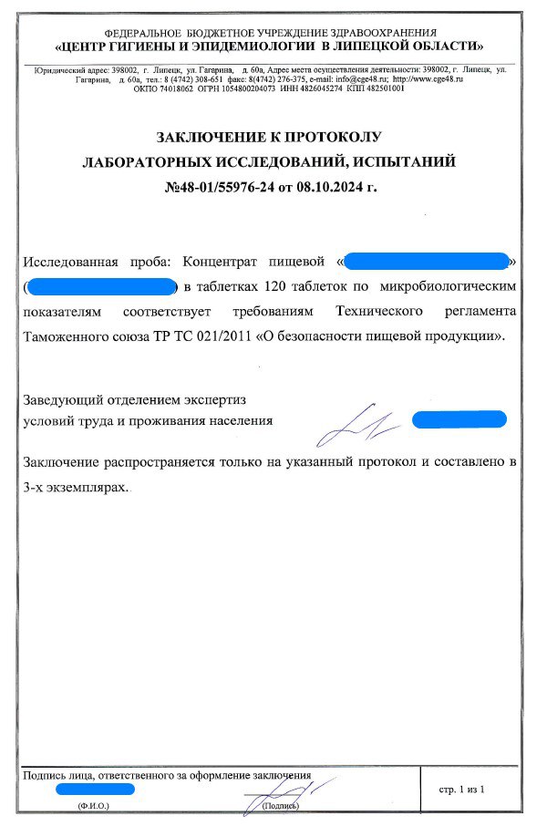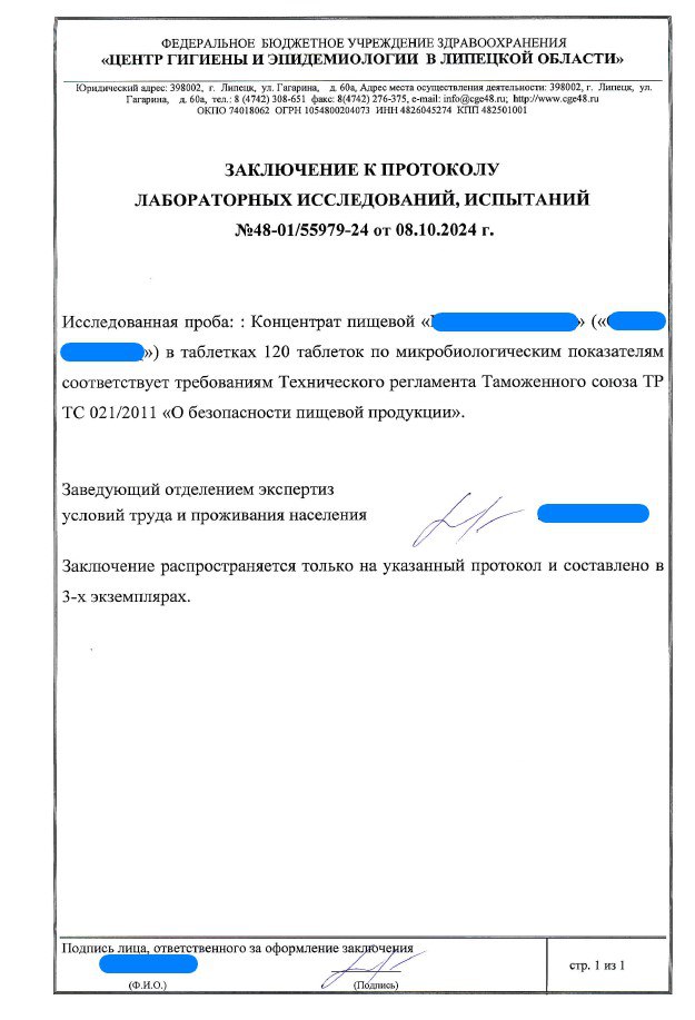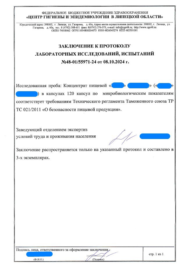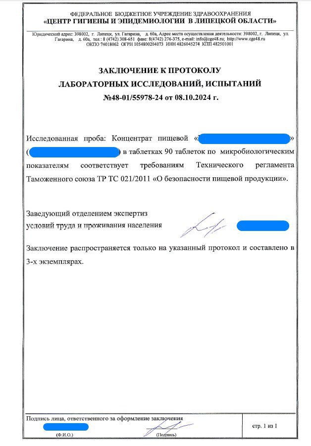 Получили первые результаты экспертиз и лабораторных исследований на соответствие требованиям безопасности пищевой продукции из Управления Федеральной службы по надзору в сфере защиты прав потребителей и благополучия человека по Липецкой области в г. Липецк.