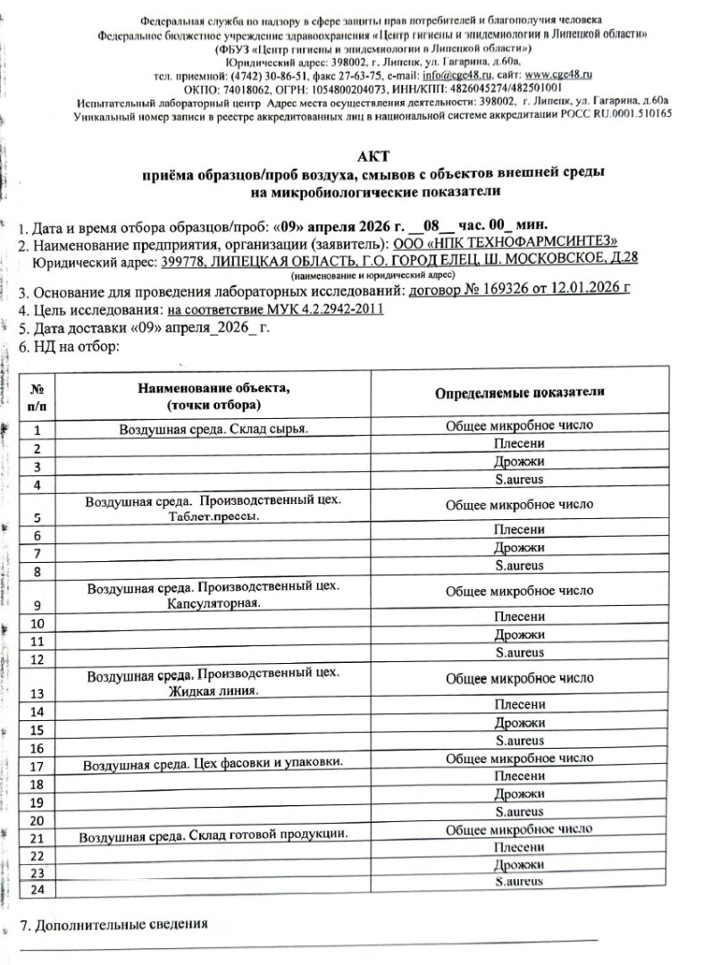 В дополнение к регулярным исследованиям смывов с оборудования, экспертизам безопасности готовой продукции, экспертизам этикеток на соответствие ТР ТС, нами заключён ещё один договор с Федеральным бюджетным учреждением здравоохранения «Центр гигиены и эпидемиологии в Липецкой области» в г. Липецке — теперь мы внедряем дополнительный микробиологический контроль воздуха в производственных и складских помещениях предприятия!🛡