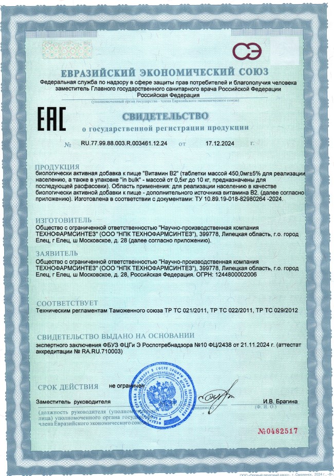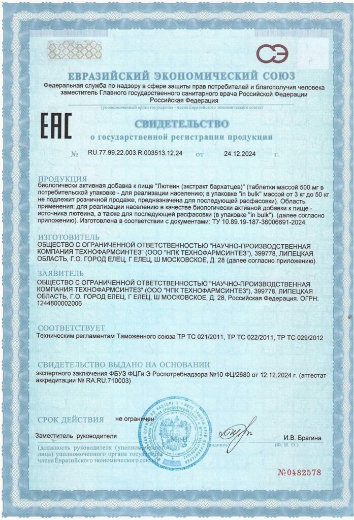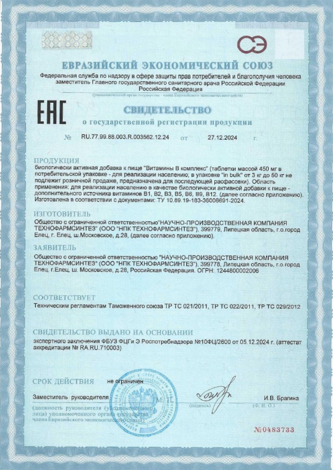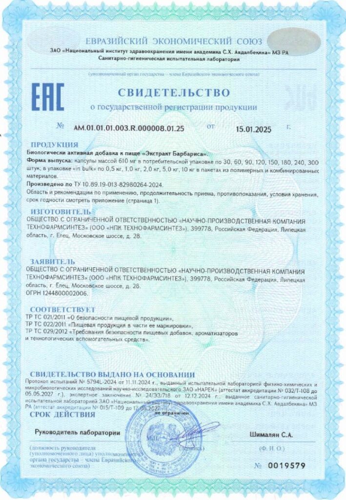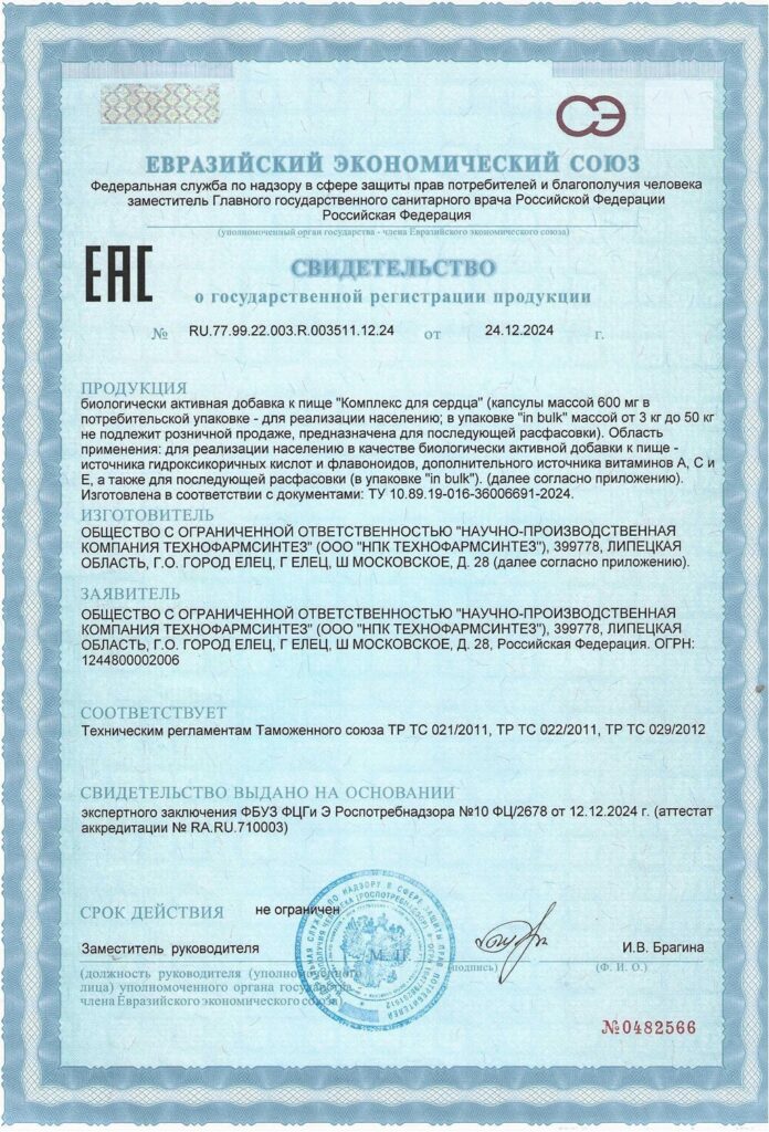 Полный список актуальных свидетельств о государственной регистрации БАД