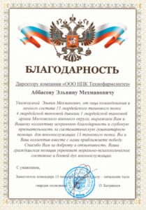 Благодарность от 13 гвардейского танкового полка 4 гвардейской танковой дивизии 1 гвардейской танковой армии Московского военного округа