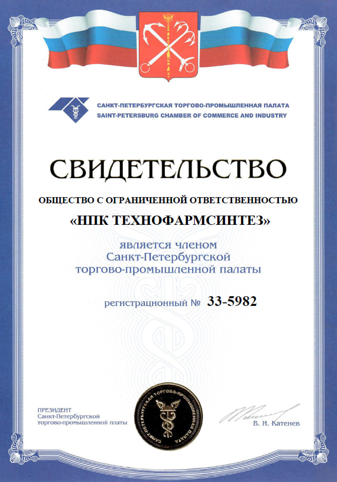 📜 НПК ТЕХНОФАРМСИНТЕЗ официально стала членом Санкт-Петербургской торгово-промышленной палаты!