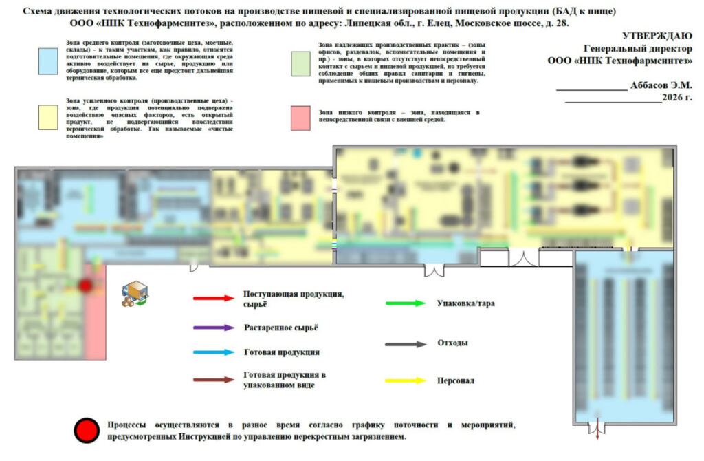 На производственной площадке НАУЧНО-ПРОИЗВОДСТВЕННОЙ КОМПАНИИ ТЕХНОФАРМСИНТЕЗ проведена актуализация схемы технологической поточности производства специализированной пищевой продукции и биологически активных добавок к пище. Обновлённая схема отражает реальную…