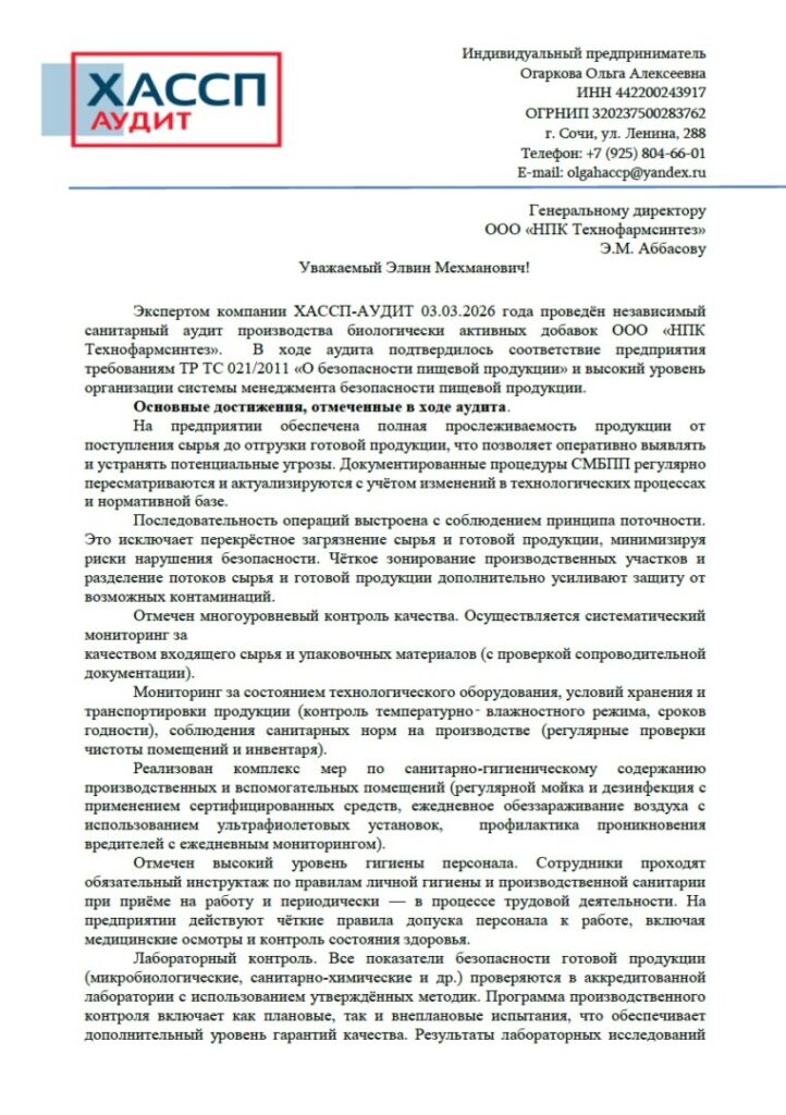 03.03.2026 НАУЧНО-ПРОИЗВОДСТВЕННАЯ КОМПАНИЯ ТЕХНОФАРМСИНТЕЗ успешно прошло очередной независимый аудит экспертов ХАССП-АУДИТ 03 марта 2026 года на производственной площадке НПК ТЕХНОФАРМСИНТЕЗ (Липецкая область, г. Елец, Московское…