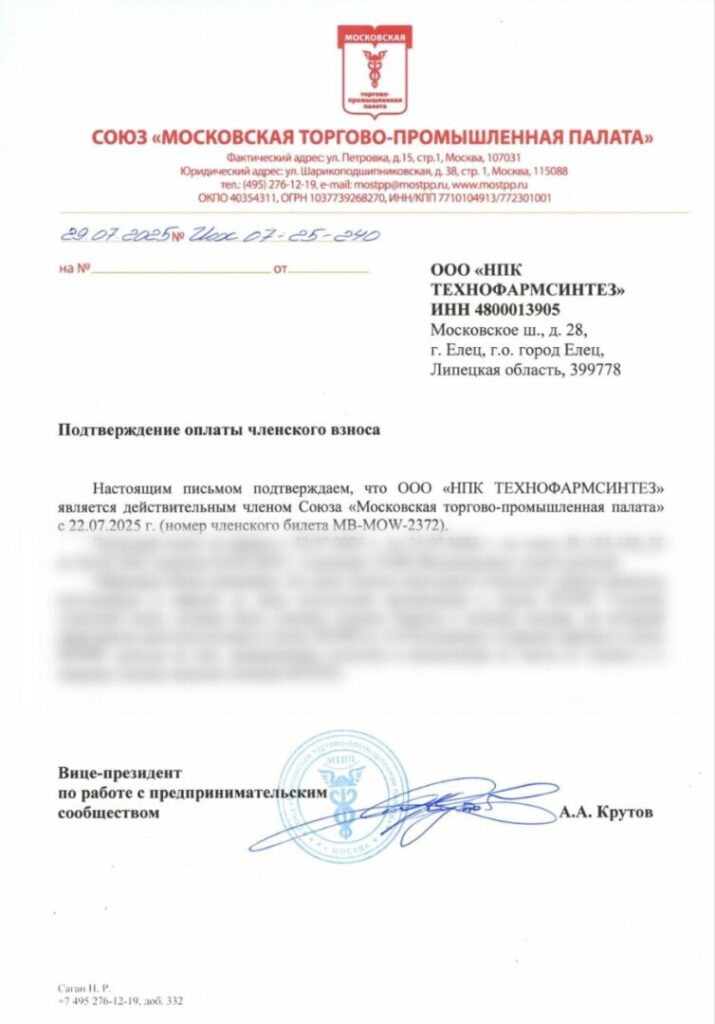 📜 НПК ТЕХНОФАРМСИНТЕЗ официально стала членом Санкт-Петербургской торгово-промышленной палаты! Это значимое событие для нашей компании и важный шаг в укреплении деловых позиций на федеральном уровне!…
